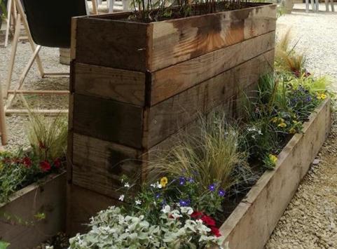 - Zoals steeds proberen we zoveel mogelijk te recycleren en de uitvoering met een zo laag als mogelijke milieu-impact te houden…Daarvoor hergebruikten we de opgebroken eiken vloer uit De Republiek, om er onze bloembakken mee te maken! Ook verzorgden we de boomspiegels van de oude olijfbomen en de palm op de binnenhof, dit zorgt, naast het esthetische aspect, er ook voor dat er minder snel verdamping optreedt, waardoor we wat water besparen en dit stimuleert de diversiteit aan planten en insecten op een kleine oppervlakte.